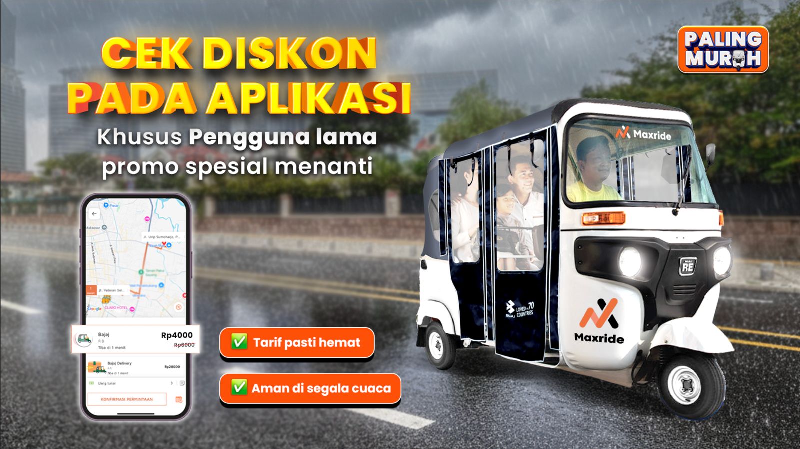 Setiap hari aku pakai Maxride Bajaj RE buat ke kantor. Cepat, praktis, dan aku nggak perlu pusing nyari parkir.Yang aku suka, tempat duduknya lega, anginnya sejuk, dan aku tetap merasa aman meskipun pulang agak malam.Maxride Bajaj RE udah jadi andalan harianku. Hemat waktu, nyaman, dan selalu tepat waktu. Buat aku, ini cara paling asik berangkat kerja di Makassar."